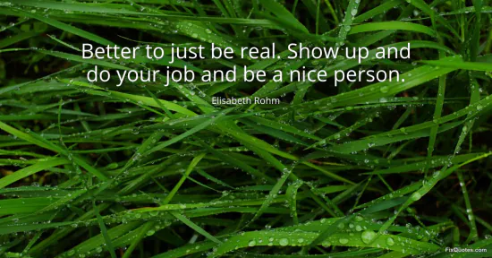 Rohm, Elisabeth. (2026, January 15). Better to just be real. Show up and do your job and be a nice person. FixQuotes. https://fixquotes.com/quotes/better-to-just-be-real-show-up-and-do-your-job-155374/