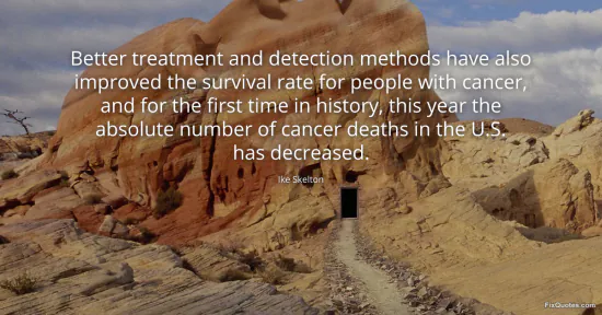 Skelton, Ike. "Better treatment and detection methods have also improved the survival rate for people with cancer, and for the first time in history, this year the absolute number of cancer deaths in the U.S. has decreased." FixQuotes. January 15, 2026. https://fixquotes.com/quotes/better-treatment-and-detection-methods-have-also-164805/.