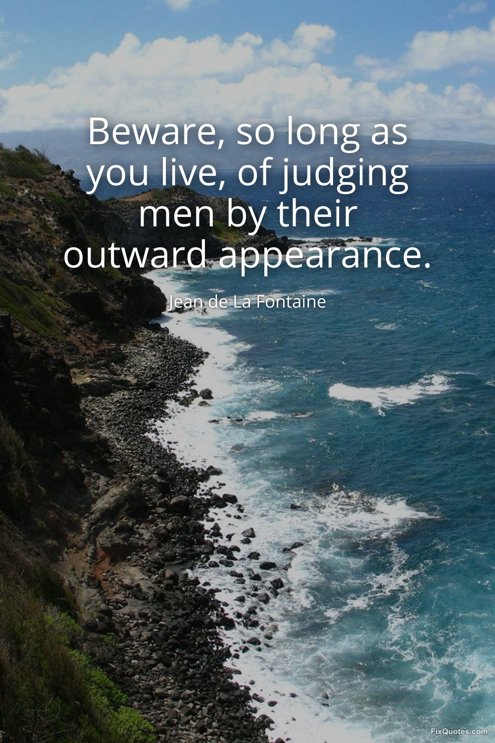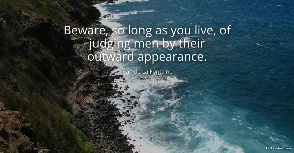 Fontaine, Jean de La. (2026, January 15). Beware, so long as you live, of judging men by their outward appearance. FixQuotes. https://fixquotes.com/quotes/beware-so-long-as-you-live-of-judging-men-by-56058/