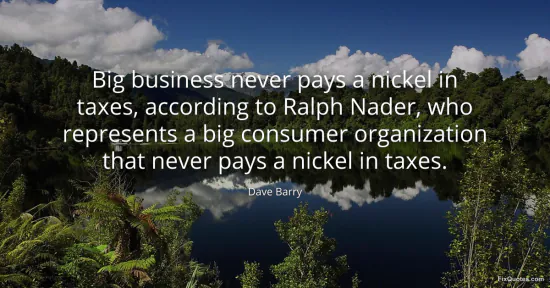Barry, Dave. "Big business never pays a nickel in taxes, according to Ralph Nader, who represents a big consumer organization that never pays a nickel in taxes." FixQuotes. January 18, 2026. https://fixquotes.com/quotes/big-business-never-pays-a-nickel-in-taxes-14353/.