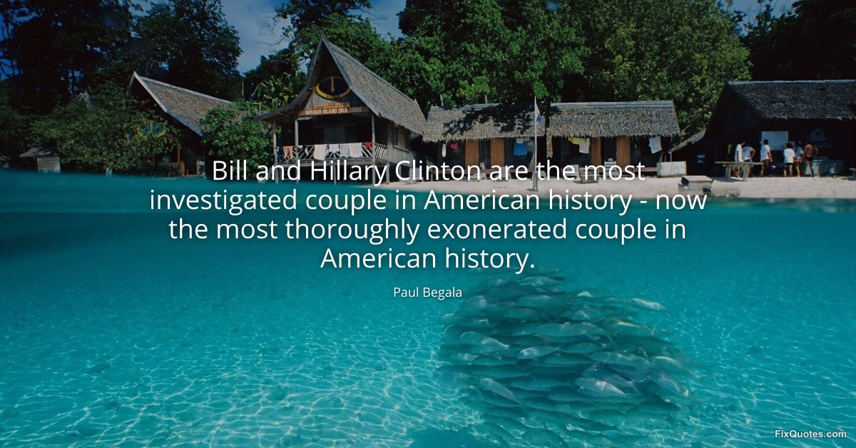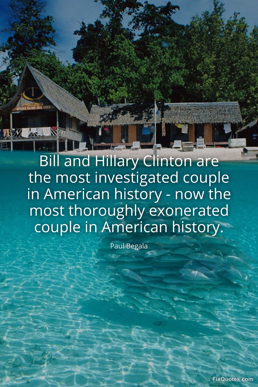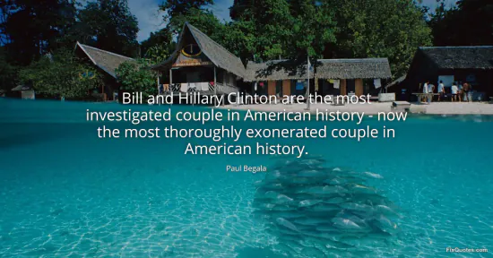Begala, Paul. "Bill and Hillary Clinton are the most investigated couple in American history - now the most thoroughly exonerated couple in American history." FixQuotes. January 17, 2026. https://fixquotes.com/quotes/bill-and-hillary-clinton-are-the-most-52122/.