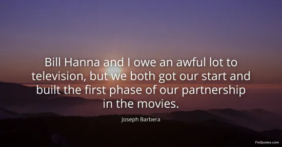 Barbera, Joseph. "Bill Hanna and I owe an awful lot to television, but we both got our start and built the first phase of our partnership in the movies." FixQuotes. January 15, 2026. https://fixquotes.com/quotes/bill-hanna-and-i-owe-an-awful-lot-to-television-18653/.