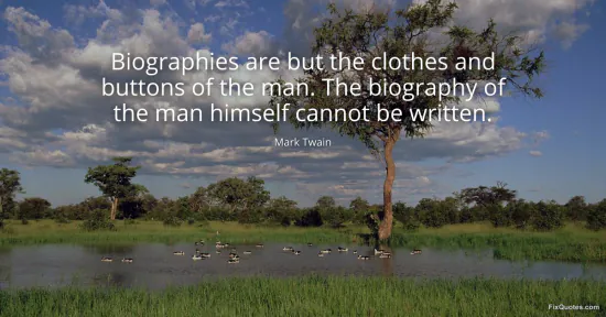 Twain, Mark. "Biographies are but the clothes and buttons of the man. The biography of the man himself cannot be written." FixQuotes. January 17, 2026. https://fixquotes.com/quotes/biographies-are-but-the-clothes-and-buttons-of-26364/.