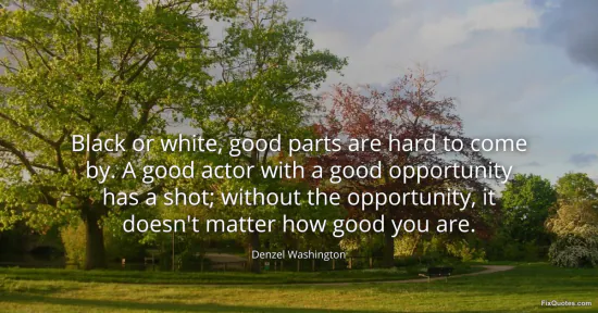 Washington, Denzel. (2026, February 19). Black or white, good parts are hard to come by. A good actor with a good opportunity has a shot; without the opportunity, it doesn't matter how good you are. FixQuotes. https://fixquotes.com/quotes/black-or-white-good-parts-are-hard-to-come-by-a-47799/