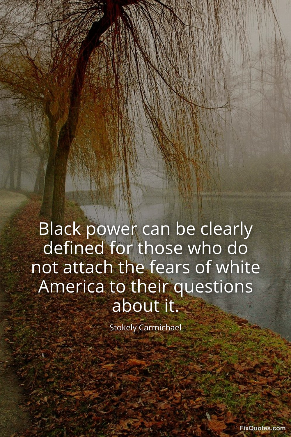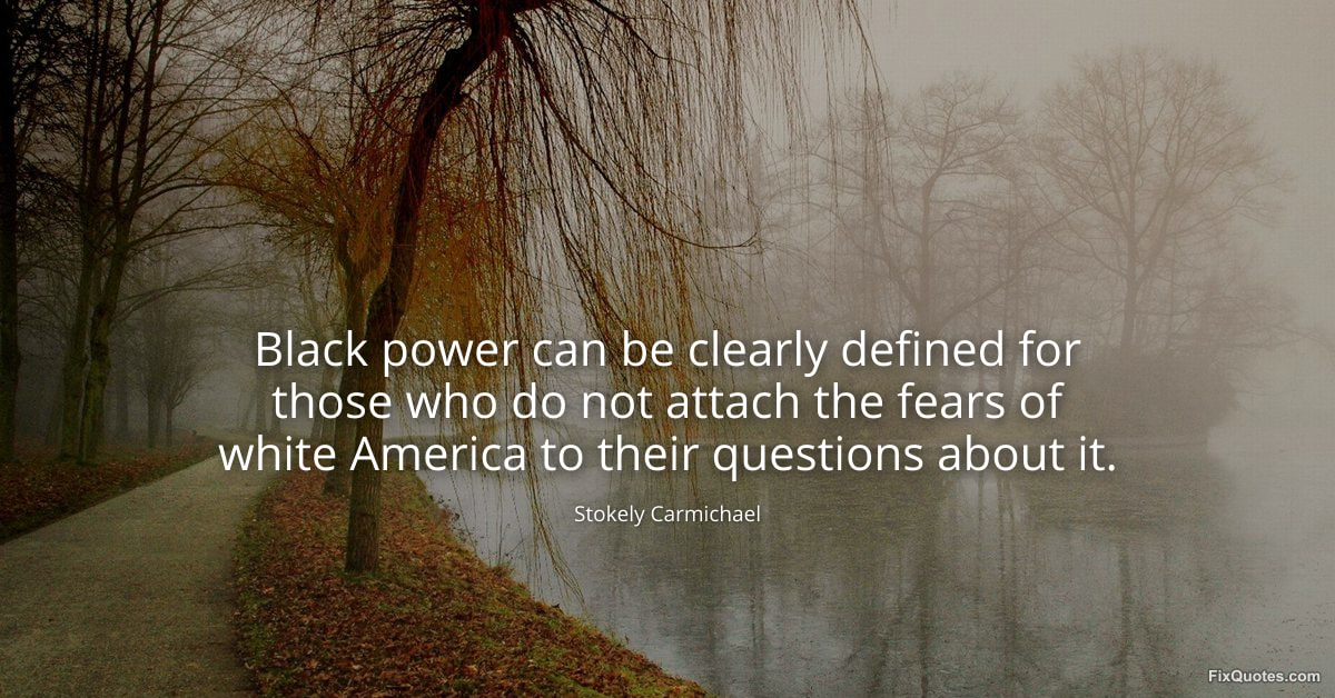 Carmichael, Stokely. (2026, January 17). Black power can be clearly defined for those who do not attach the fears of white America to their questions about it. FixQuotes. https://fixquotes.com/quotes/black-power-can-be-clearly-defined-for-those-who-58664/