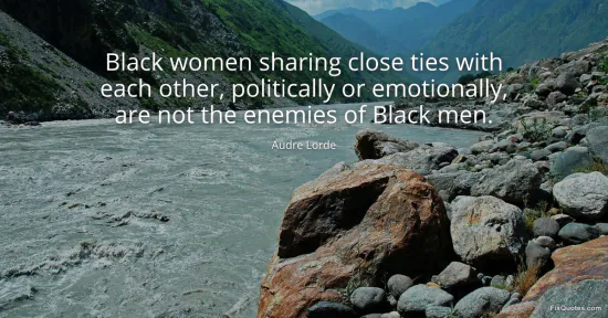 Lorde, Audre. "Black women sharing close ties with each other, politically or emotionally, are not the enemies of Black men." FixQuotes. January 17, 2026. https://fixquotes.com/quotes/black-women-sharing-close-ties-with-each-other-36130/.