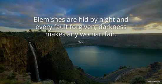 Ovid. "Blemishes are hid by night and every fault forgiven; darkness makes any woman fair." FixQuotes. January 18, 2026. https://fixquotes.com/quotes/blemishes-are-hid-by-night-and-every-fault-8619/.