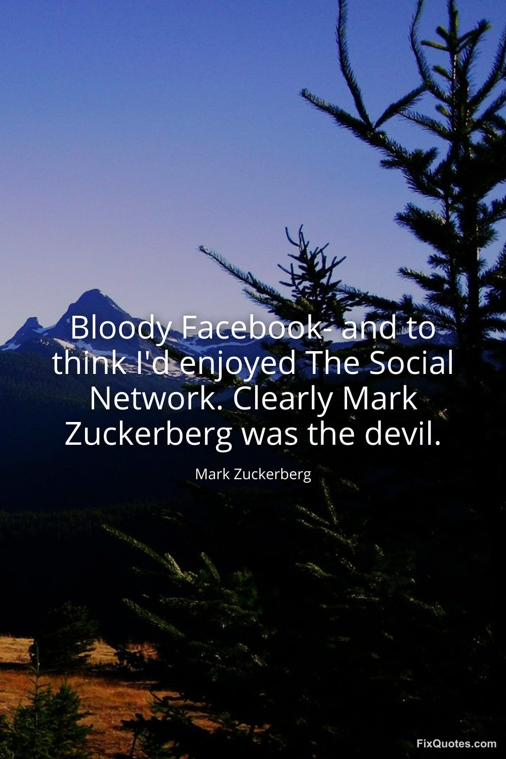Zuckerberg, Mark. (2026, January 18). Bloody Facebook- and to think I'd enjoyed The Social Network. Clearly Mark Zuckerberg was the devil. FixQuotes. https://fixquotes.com/quotes/bloody-facebook-and-to-think-id-enjoyed-the-184055/