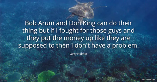 Holmes, Larry. "Bob Arum and Don King can do their thing but if I fought for those guys and they put the money up like they are supposed to then I don't have a problem." FixQuotes. January 16, 2026. https://fixquotes.com/quotes/bob-arum-and-don-king-can-do-their-thing-but-if-i-92923/.