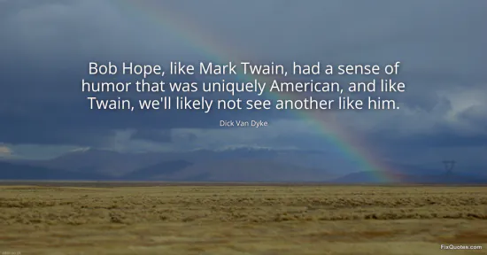 Dyke, Dick Van. (2026, January 17). Bob Hope, like Mark Twain, had a sense of humor that was uniquely American, and like Twain, we'll likely not see another like him. FixQuotes. https://fixquotes.com/quotes/bob-hope-like-mark-twain-had-a-sense-of-humor-57931/