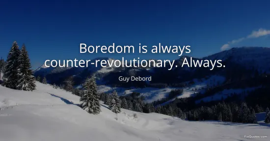 Debord, Guy. (2026, January 15). Boredom is always counter-revolutionary. Always. FixQuotes. https://fixquotes.com/quotes/boredom-is-always-counter-revolutionary-always-59756/
