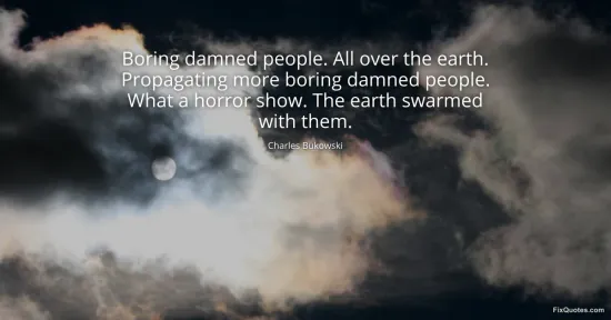 Bukowski, Charles. (2026, February 10). Boring damned people. All over the earth. Propagating more boring damned people. What a horror show. The earth swarmed with them. FixQuotes. https://fixquotes.com/quotes/boring-damned-people-all-over-the-earth-185245/