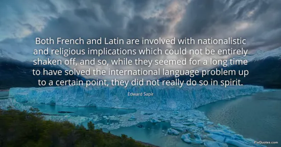 Sapir, Edward. "Both French and Latin are involved with nationalistic and religious implications which could not be entirely shaken off, and so, while they seemed for a long time to have solved the international language problem up to a certain point, they did not really do so in spirit." FixQuotes. January 17, 2026. https://fixquotes.com/quotes/both-french-and-latin-are-involved-with-53003/.