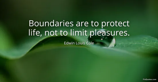 Cole, Edwin Louis. (2026, January 17). Boundaries are to protect life, not to limit pleasures. FixQuotes. https://fixquotes.com/quotes/boundaries-are-to-protect-life-not-to-limit-56102/