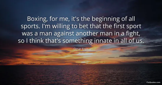 Epps, Omar. (2026, January 16). Boxing, for me, it's the beginning of all sports. I'm willing to bet that the first sport was a man against another man in a fight, so I think that's something innate in all of us. FixQuotes. https://fixquotes.com/quotes/boxing-for-me-its-the-beginning-of-all-sports-im-123223/
