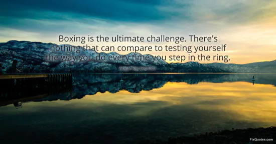 "Boxing is the ultimate challenge. There's nothing that can compare to testing yourself the way you do every time you step in the ring." FixQuotes, 16 Jan. 2026, https://fixquotes.com/quotes/boxing-is-the-ultimate-challenge-theres-nothing-103353/. Accessed 12 Feb. 2026.