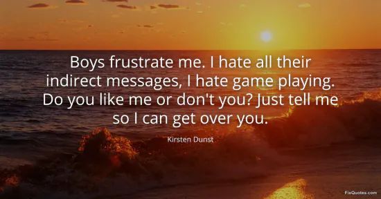 "Boys frustrate me. I hate all their indirect messages, I hate game playing. Do you like me or don't you? Just tell me so I can get over you"