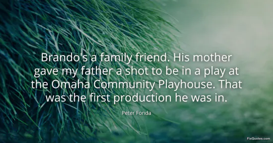 Fonda, Peter. (2026, January 16). Brando's a family friend. His mother gave my father a shot to be in a play at the Omaha Community Playhouse. That was the first production he was in. FixQuotes. https://fixquotes.com/quotes/brandos-a-family-friend-his-mother-gave-my-father-107262/