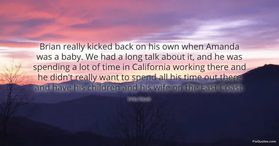 "Brian really kicked back on his own when Amanda was a baby. We had a long talk about it, and he was spending a lot of time in California working there and he didn't really want to spend all his time out there and have his children and his wife on the East Coast"