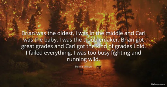 Wilson, Dennis. (2026, January 15). Brian was the oldest, I was in the middle and Carl was the baby. I was the troublemaker. Brian got great grades and Carl got the kind of grades I did. I failed everything. I was too busy fighting and running wild. FixQuotes. https://fixquotes.com/quotes/brian-was-the-oldest-i-was-in-the-middle-and-carl-158119/