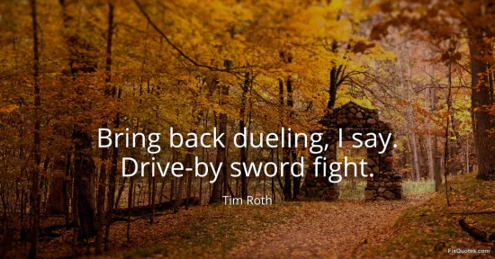 Roth, Tim. (2026, January 14). Bring back dueling, I say. Drive-by sword fight. FixQuotes. https://fixquotes.com/quotes/bring-back-dueling-i-say-drive-by-sword-fight-166363/