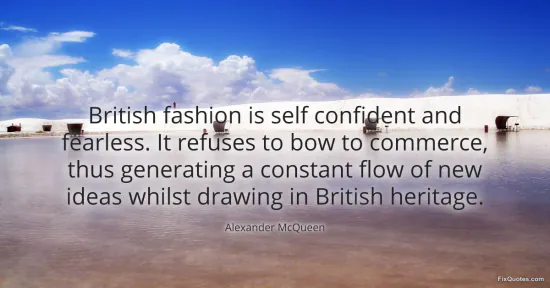 McQueen, Alexander. "British fashion is self confident and fearless. It refuses to bow to commerce, thus generating a constant flow of new ideas whilst drawing in British heritage." FixQuotes. January 16, 2026. https://fixquotes.com/quotes/british-fashion-is-self-confident-and-fearless-it-137622/.