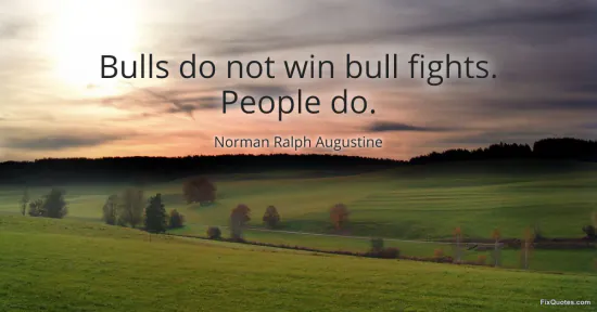 Augustine, Norman Ralph. (2026, January 16). Bulls do not win bull fights. People do. FixQuotes. https://fixquotes.com/quotes/bulls-do-not-win-bull-fights-people-do-126195/