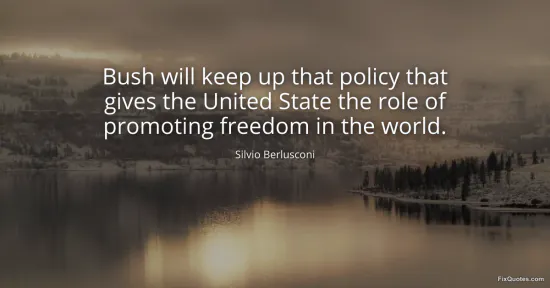 Berlusconi, Silvio. (2026, January 18). Bush will keep up that policy that gives the United State the role of promoting freedom in the world. FixQuotes. https://fixquotes.com/quotes/bush-will-keep-up-that-policy-that-gives-the-19222/