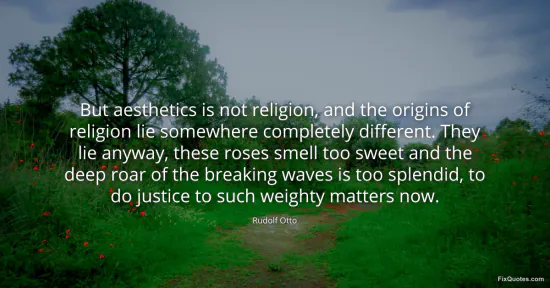 Otto, Rudolf. "But aesthetics is not religion, and the origins of religion lie somewhere completely different. They lie anyway, these roses smell too sweet and the deep roar of the breaking waves is too splendid, to do justice to such weighty matters now." FixQuotes. January 17, 2026. https://fixquotes.com/quotes/but-aesthetics-is-not-religion-and-the-origins-of-71381/.