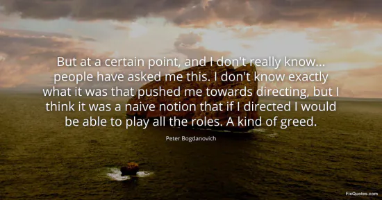 Calling it "a kind of greed" adds bite. Bogdanovich isn’t confessing to villainy; he’s naming a creative possessiveness that sits beneath taste and craft. The impulse to control tone, rhythm, performance, even the audience’s emotional tempo is, at its core, acquisitive. Coming from a New Hollywood figure who moved between critic, historian, and filmmaker, the remark also reads as self-awareness about power: criticism watches, directing takes. His "greed" is the desire to stop observing cinema and start inhabiting it, to own the whole room by orchestrating everyone else’s presence.