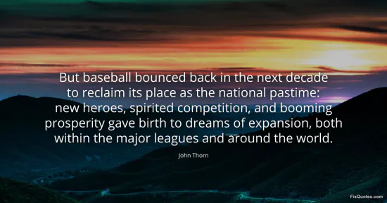 Thorn, John. (2026, January 15). But baseball bounced back in the next decade to reclaim its place as the national pastime: new heroes, spirited competition, and booming prosperity gave birth to dreams of expansion, both within the major leagues and around the world. FixQuotes. https://fixquotes.com/quotes/but-baseball-bounced-back-in-the-next-decade-to-151848/