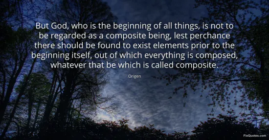 Origen. "But God, who is the beginning of all things, is not to be regarded as a composite being, lest perchance there should be found to exist elements prior to the beginning itself, out of which everything is composed, whatever that be which is called composite." FixQuotes. January 15, 2026. https://fixquotes.com/quotes/but-god-who-is-the-beginning-of-all-things-is-not-153940/.