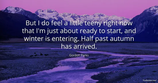 Parks, Gordon. "But I do feel a little teeny right now that I'm just about ready to start, and winter is entering. Half past autumn has arrived." FixQuotes. January 17, 2026. https://fixquotes.com/quotes/but-i-do-feel-a-little-teeny-right-now-that-im-79066/.