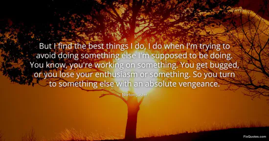 "But I find the best things I do, I do when I'm trying to avoid doing something else I'm supposed to be doing. You know, you're working on something. You get bugged, or you lose your enthusiasm or something. So you turn to something else with an absolute vengeance"