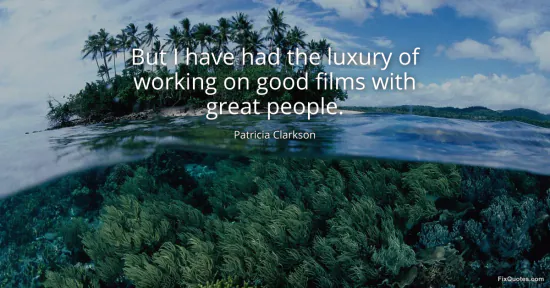 Clarkson, Patricia. (2026, January 16). But I have had the luxury of working on good films with great people. FixQuotes. https://fixquotes.com/quotes/but-i-have-had-the-luxury-of-working-on-good-82471/
