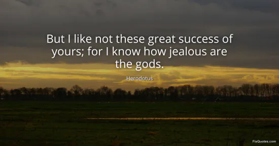 Herodotus. "But I like not these great success of yours; for I know how jealous are the gods." FixQuotes. January 16, 2026. https://fixquotes.com/quotes/but-i-like-not-these-great-success-of-yours-for-i-96266/.