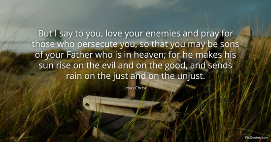 Christ, Jesus. "But I say to you, love your enemies and pray for those who persecute you, so that you may be sons of your Father who is in heaven; for he makes his sun rise on the evil and on the good, and sends rain on the just and on the unjust." FixQuotes. February 18, 2026. https://fixquotes.com/quotes/but-i-say-to-you-love-your-enemies-and-pray-for-185625/.