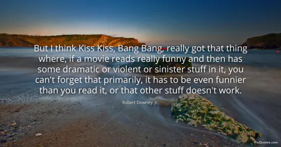 Jr., Robert Downey,. "But I think Kiss Kiss, Bang Bang, really got that thing where, if a movie reads really funny and then has some dramatic or violent or sinister stuff in it, you can't forget that primarily, it has to be even funnier than you read it, or that other stuff doesn't work." FixQuotes. February 18, 2026. https://fixquotes.com/quotes/but-i-think-kiss-kiss-bang-bang-really-got-that-90894/.