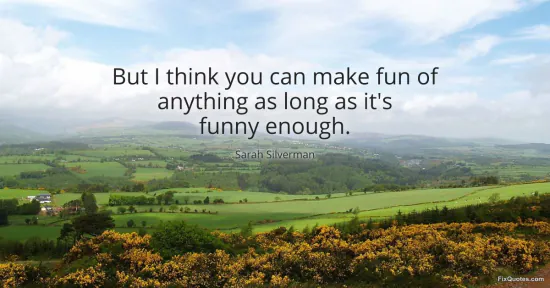 Silverman, Sarah. (2026, January 16). But I think you can make fun of anything as long as it's funny enough. FixQuotes. https://fixquotes.com/quotes/but-i-think-you-can-make-fun-of-anything-as-long-103006/