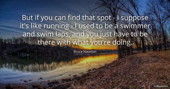 Nauman, Bruce. (2026, January 17). But if you can find that spot - I suppose it's like running - I used to be a swimmer and swim laps, and you just have to be there with what you're doing. FixQuotes. https://fixquotes.com/quotes/but-if-you-can-find-that-spot-i-suppose-its-48386/