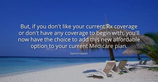Hastert, Dennis. (2026, January 17). But, if you don't like your current Rx coverage or don't have any coverage to begin with, you'll now have the choice to add this new affordable option to your current Medicare plan. FixQuotes. https://fixquotes.com/quotes/but-if-you-dont-like-your-current-rx-coverage-or-77987/