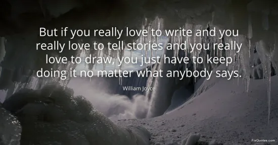 Joyce, William. (2026, January 17). But if you really love to write and you really love to tell stories and you really love to draw, you just have to keep doing it no matter what anybody says. FixQuotes. https://fixquotes.com/quotes/but-if-you-really-love-to-write-and-you-really-72206/