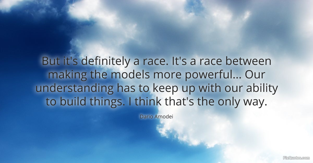 Amodei, Dario. (2026, February 16). But it's definitely a race. It's a race between making the models more powerful... Our understanding has to keep up with our ability to build things. I think that's the only way. FixQuotes. https://fixquotes.com/quotes/but-its-definitely-a-race-its-a-race-between-185493/