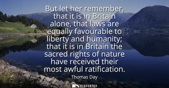 "But let her remember, that it is in Britain alone, that laws are equally favourable to liberty and humanity; that it is in Britain the sacred rights of nature have received their most awful ratification"
