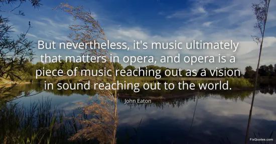 "But nevertheless, it's music ultimately that matters in opera, and opera is a piece of music reaching out as a vision in sound reaching out to the world"