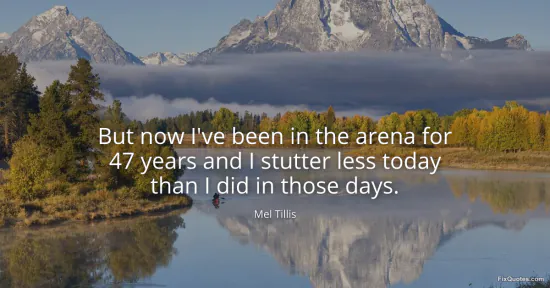 Tillis, Mel. "But now I've been in the arena for 47 years and I stutter less today than I did in those days." FixQuotes. January 15, 2026. https://fixquotes.com/quotes/but-now-ive-been-in-the-arena-for-47-years-and-i-152864/.