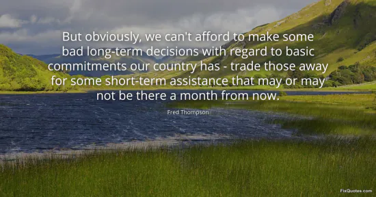 Thompson, Fred. (2026, January 17). But obviously, we can't afford to make some bad long-term decisions with regard to basic commitments our country has - trade those away for some short-term assistance that may or may not be there a month from now. FixQuotes. https://fixquotes.com/quotes/but-obviously-we-cant-afford-to-make-some-bad-55251/