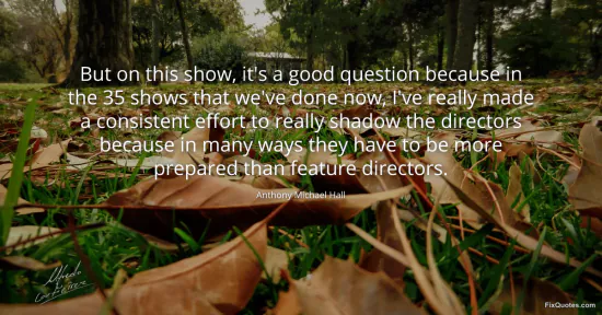 Hall, Anthony Michael. (2026, January 16). But on this show, it's a good question because in the 35 shows that we've done now, I've really made a consistent effort to really shadow the directors because in many ways they have to be more prepared than feature directors. FixQuotes. https://fixquotes.com/quotes/but-on-this-show-its-a-good-question-because-in-139014/