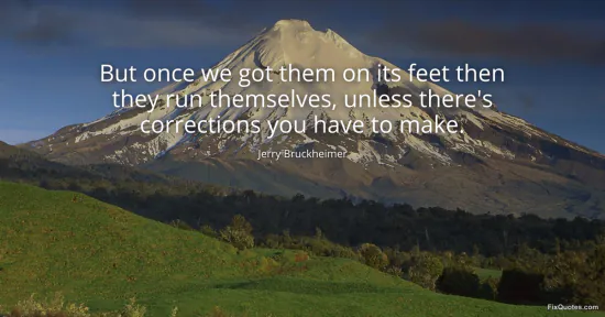 Bruckheimer, Jerry. (2026, January 16). But once we got them on its feet then they run themselves, unless there's corrections you have to make. FixQuotes. https://fixquotes.com/quotes/but-once-we-got-them-on-its-feet-then-they-run-86298/