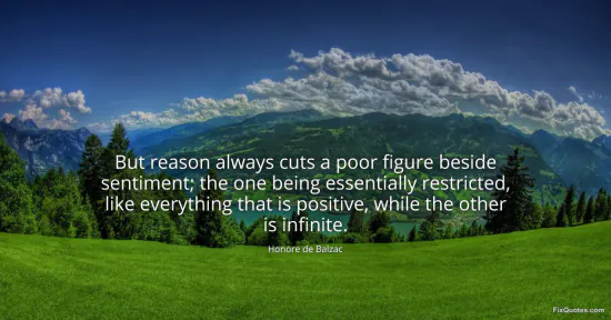 Balzac, Honore de. (2026, January 18). But reason always cuts a poor figure beside sentiment; the one being essentially restricted, like everything that is positive, while the other is infinite. FixQuotes. https://fixquotes.com/quotes/but-reason-always-cuts-a-poor-figure-beside-15272/